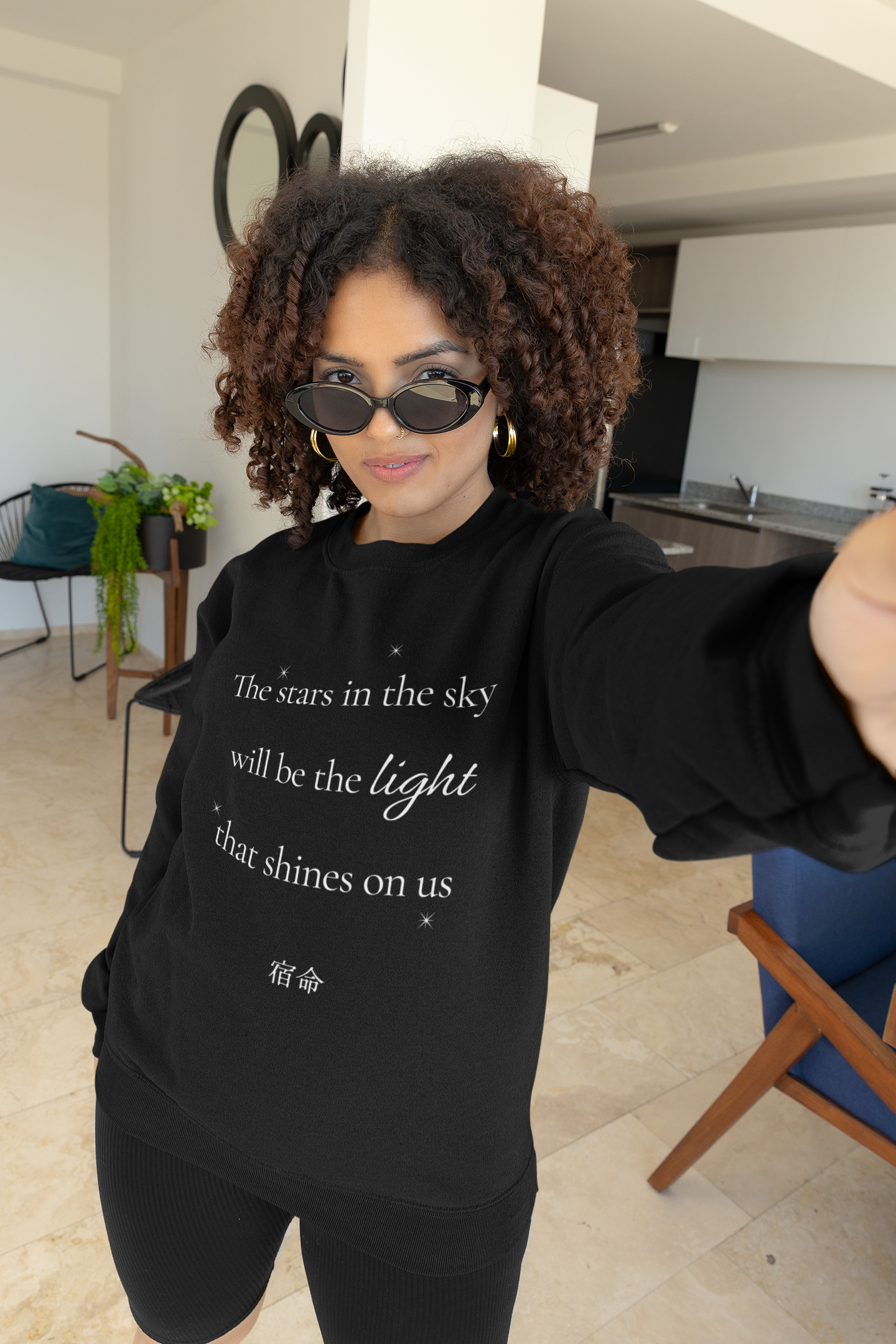This cozy crewneck is inspired by 宿命 (Shukumei)—one of the standout tracks on Stray Kids’ new Japan release. I loved the line “the stars in the sky will be the light that shines on us” the second I heard it. It felt like a quiet reminder to keep going, and I wanted that feeling woven right into something wearable.